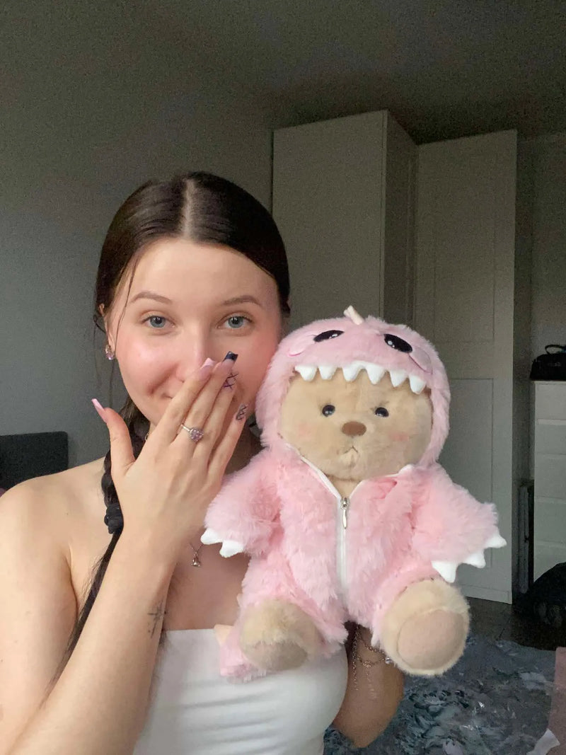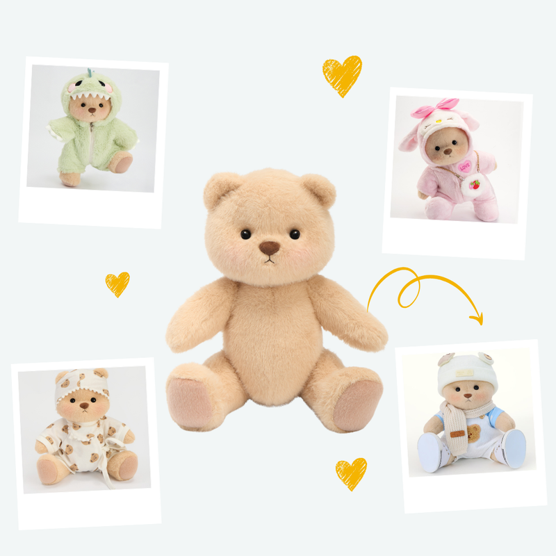 Много е просто! Изберете от нашите очарователни тоалети 👕 и персонализирайте плюшеното мече точно както искате. Всички дрехи са взаимозаменяеми, така че можете да сменяте тоалетите толкова често, колкото искате. ✨